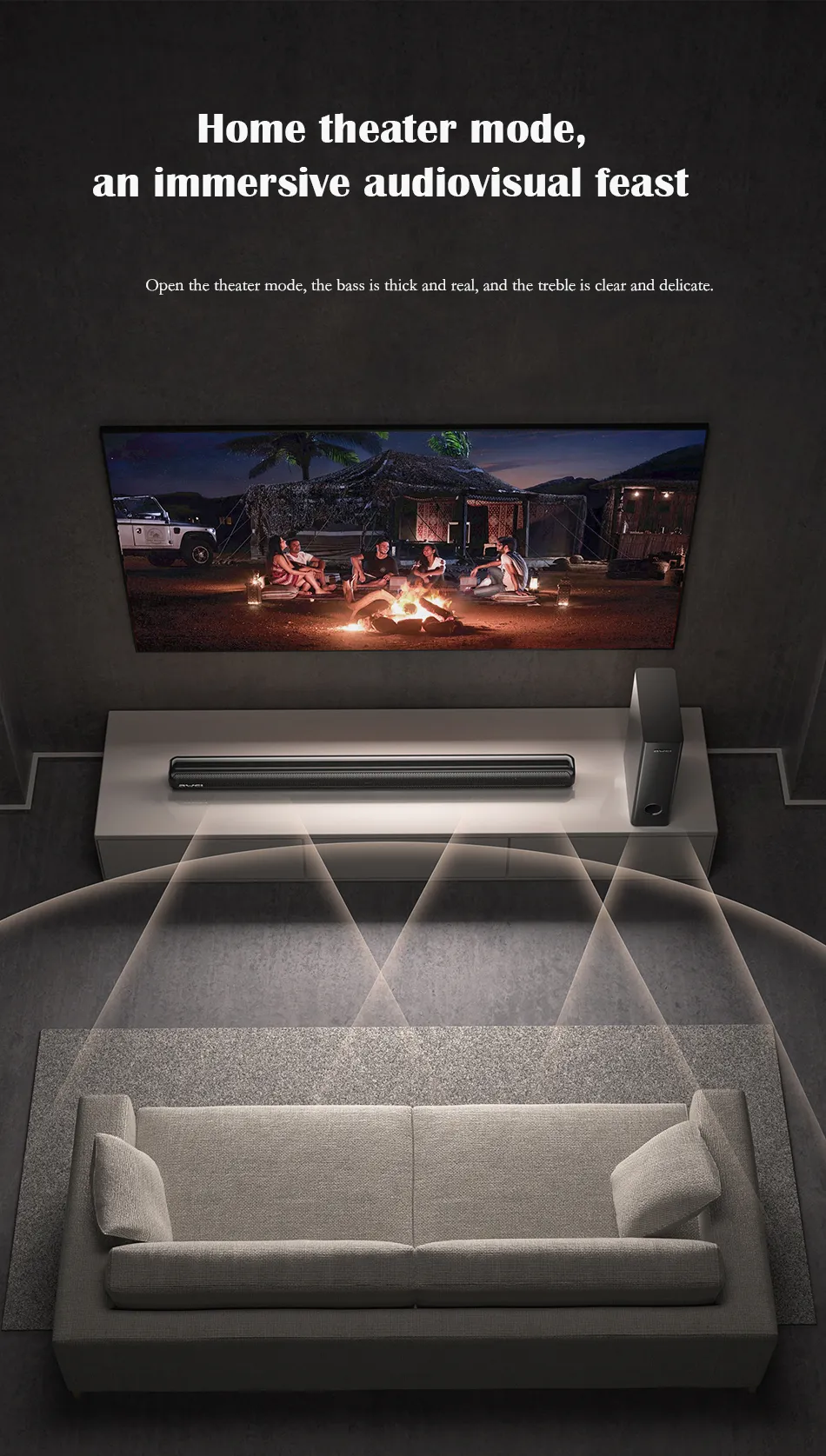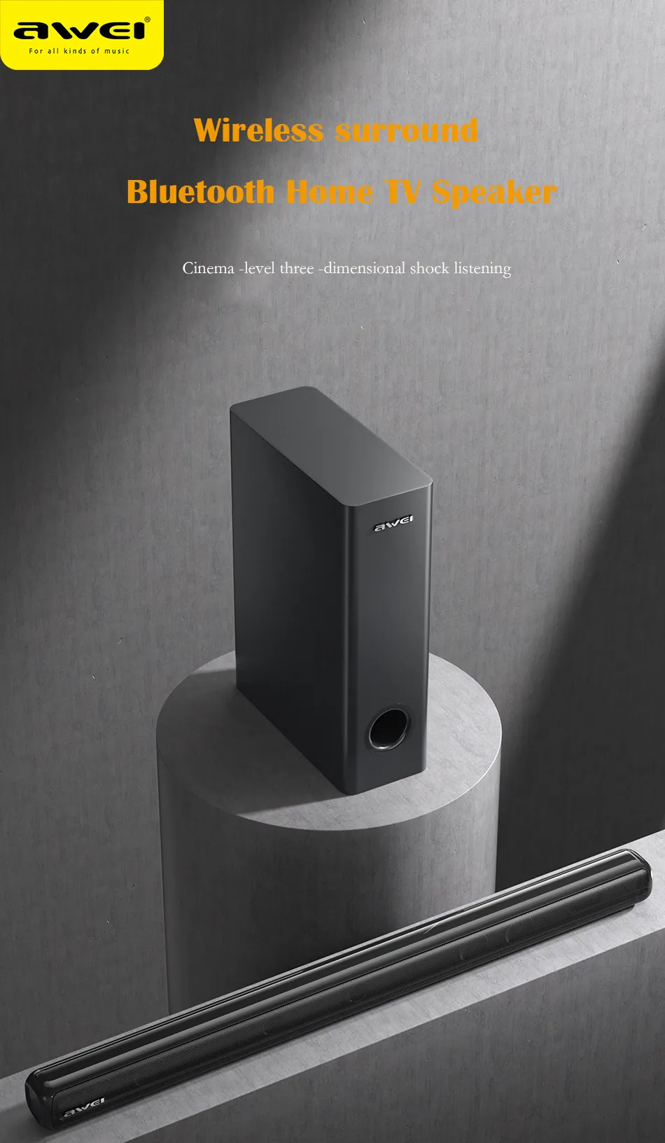 The Awei Y520 Soundbar offers 110W of immersive audio, Bluetooth 5.0, and a dedicated subwoofer channel for an elevated home entertainment experience.
