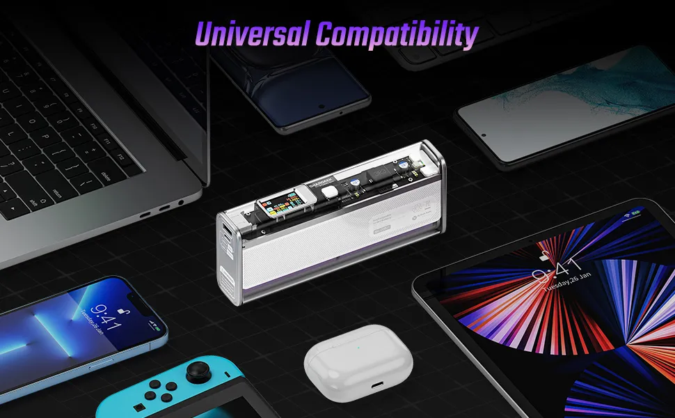 Featuring an IPS display, this power bank provides real-time insights into its operation. Easily monitor battery life, output distribution, running temperature, battery temperature, and working ports. This visual feedback ensures you stay informed about your charging process.